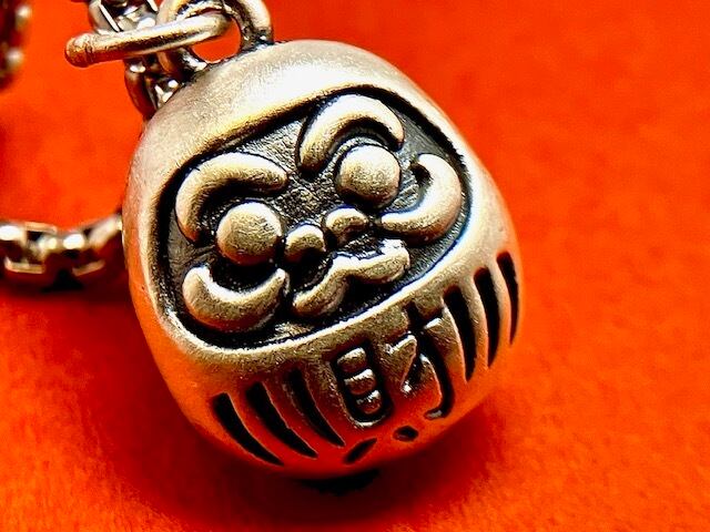 達磨さんシルバーネックレスは、その名の通り愛らしい達磨のデザインが特徴です。達磨は忍耐や成長の象徴として知られ、多くの人々に幸運をもたらす存在として親しまれています。